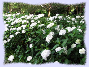 また、白い花の「アジサイ」をまとめて植えてある場所もあり、白一色の「アジサイ」もなかなか見ごたえがあります!