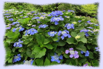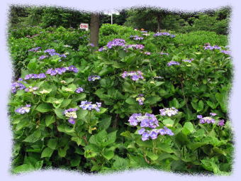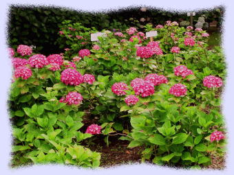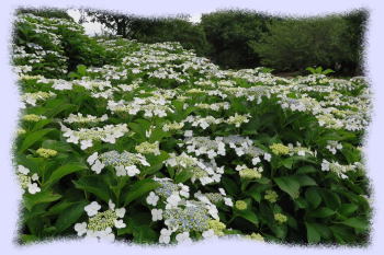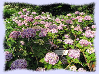 また、比較的狭い面積にいろいろな種類の「アジサイ(紫陽花)」が密集して植栽されていて、「アジサイ」にはこんなに色々な種類の花があるのかと驚くほどです。